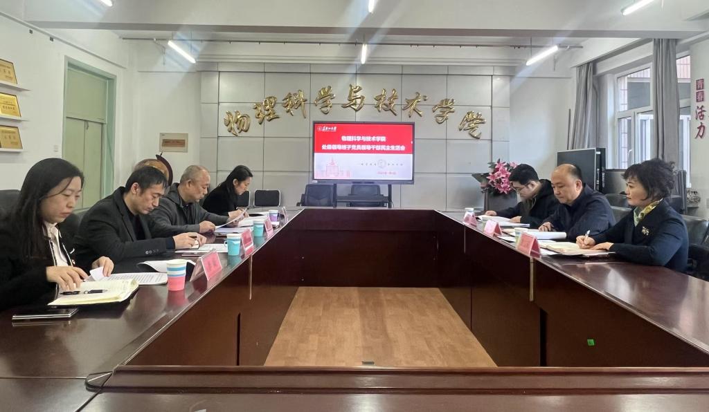 按照学校《关于开好2024年度二级党组织处级领导班子党员领导干部民主生活会的通知》要求,1月8日上午9时,物理科学与技术学院党总支在实验楼216会议室召开处级领导班子党员领导干部民主生活会。学校民主生活会督导组成员肖宇、袁立莉,学校第三巡察组成员胡峰到会指导,学院全体领导班子成员参加会议。会议由学院党总支书记周文海主持。