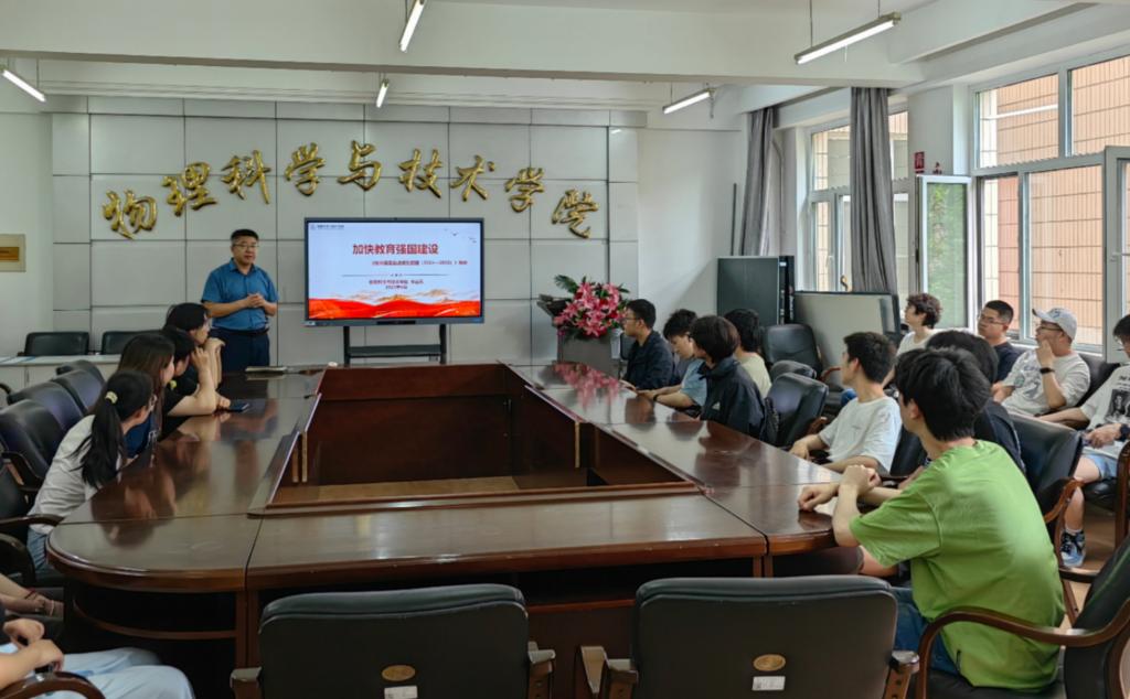 根据《中共中央、国务院关于加强和改进新形势下高校思想政治工作的意见》《关于深化新时代学校思想政治理论课改革创新的若干意见》等文件要求,以及学校党委的统一部署,物理科学与技术学院党委书记李云风、院长姜子实分别于6月16日和19日在实验楼216室以《加快教育强国建设》为主题为学院2024级本科生及研究生讲授思想政治专题理论课。