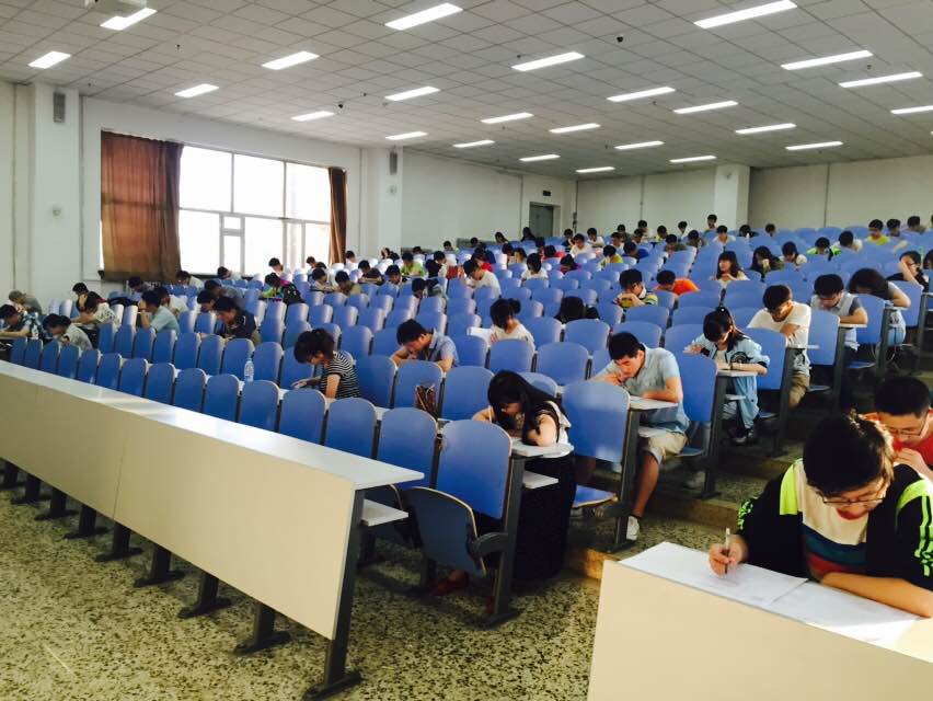 下午六时,物理知识竞赛准时开始。同学们有序就位后,监考老师逐一分发试卷。在180教室,非专业组选手聚精会神地解答着试题,他们表情时而轻松自如,时而眉头紧锁,表现出的严谨认真态度丝毫不示弱。与此同时,280教室的专业组考场,气氛显得更加凝重,有的同学在不停的写写算算,有的同学冥思苦想一番后写下答案,还有的同学认真计算,不愿放过任何一道难题,更加体现了物理人专注严肃的态度。