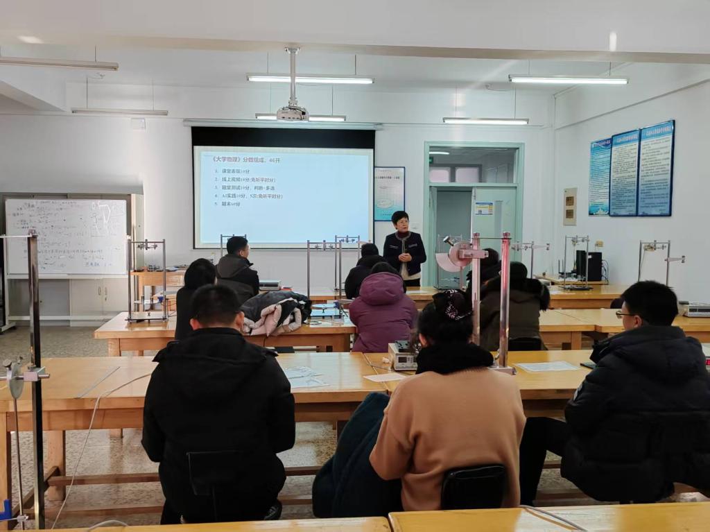 为全面梳理本学期教学情况,保障期末考试工作平稳有序,科学规划下学期教学任务,12月30日上午,大学物理教研室在实验楼626室成功举办了期末教学研讨活动。活动由教研室主任李淑侠老师主持,教研室全体教师参加了本次研讨。