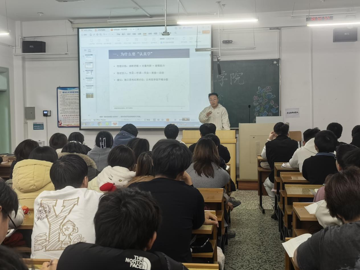 为深入推进优良学风建设,帮助新生学有方向、学有方法、学有收获,发挥学业导师教书育人作用,物理科学与技术学院于2025年11月3日、11月6日分别在三号楼424,实验楼216召开物理班、物理中俄班本科新生学业导师见面会,会议由学院党委副书记邢有男主持,各班学业导师主讲,2025级辅导员及全体新生参加本次会议。
