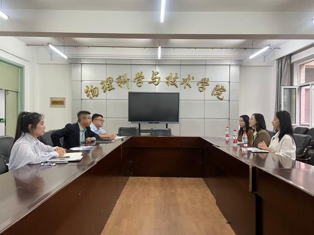为扎实推进访企拓岗专项行动,助力2026届毕业生实现更高质量、更充分的就业,物理科学与技术学院2025年9月16日邀请TCL华星光电技术有限公司到实验楼216室开展座谈会。物理科学与技术学院党委书记李云风、辅导员王鹏达、电子工程学院辅导员刘世新以及TCL华星光电技术有限公司招聘经理王婷婷、王思源出席本次活动。